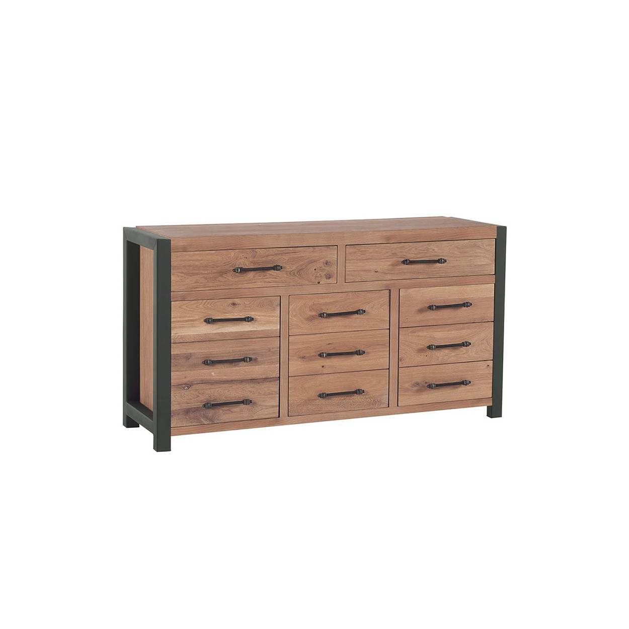 Collection Catane dans une inspiration industrielle en chêne massif et placage finition huilée avec piétement en métal patiné et vernis. Vous comblerez votre séjour avec ses nombreux meubles de compléments disponibles.