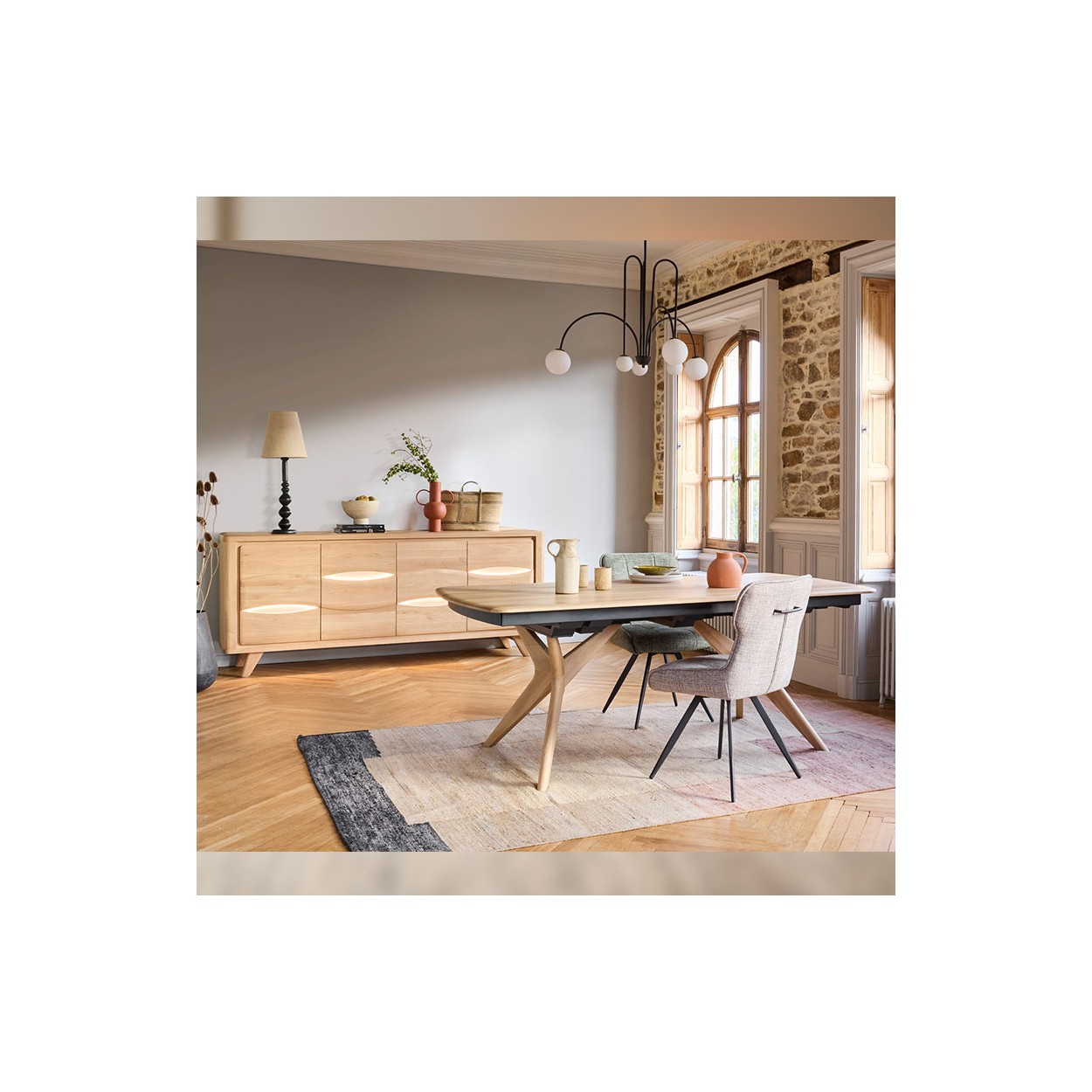 La collection présente des nuances et aspects naturels du bois tels que des nœuds et toutes les caractéristiques du bois authentique. Ces aspects naturels donnés par le chêne mettent en valeur ce meuble et sa finition. Fabriqué en France(85). Garantie 1 an.
