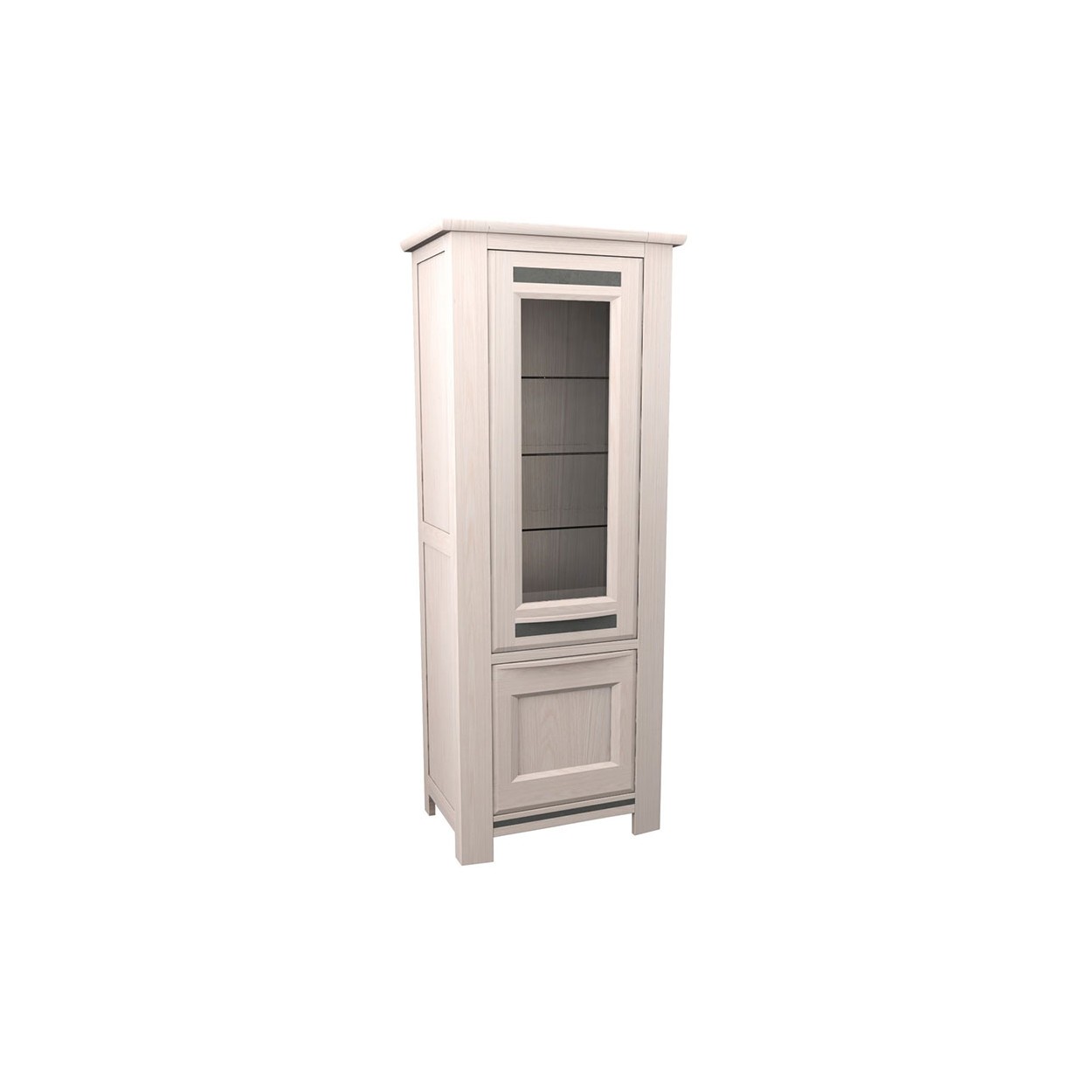 Portes avec fermeture amortie. 1 tablettes en partie inférieure et 3 tablettes réglables en verre derrière la porte vitrée.