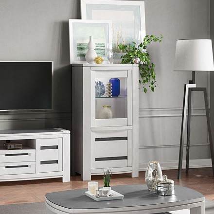 Une collection Inès au design contemporain en finition blanchie avec incrustation en céramique véritable. De nombreux meubles de complément sont disponibles pour composer votre intérieur ou votre salon. Elle existe également en finition naturelle.