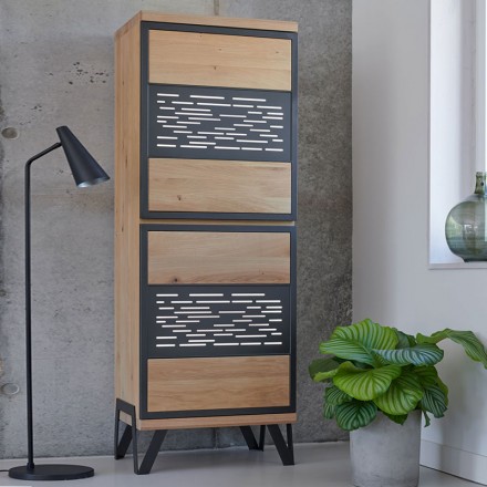 La collection présente des nuances et aspects naturels du bois tels que des nœuds et toutes les caractéristiques du bois authentique. Ces aspects naturels donnés par le chêne mettent en valeur ce meuble et sa finition.