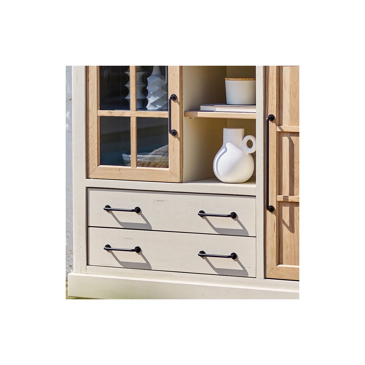 La collection présente des nuances et aspects naturels du bois tels que des nœuds et toutes les caractéristiques du bois authentique. Ces aspects naturels donnés par le chêne mettent en valeur ce meuble et sa finition.