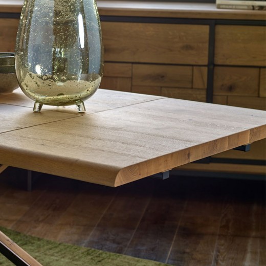 Une collection Prima dans la tendance industrielle en chêne massif avec finition en métal venant dans l'encadrement des portes et bois incrusté en façade façon mosaïque. Un charme exceptionnel pour cette gamme !