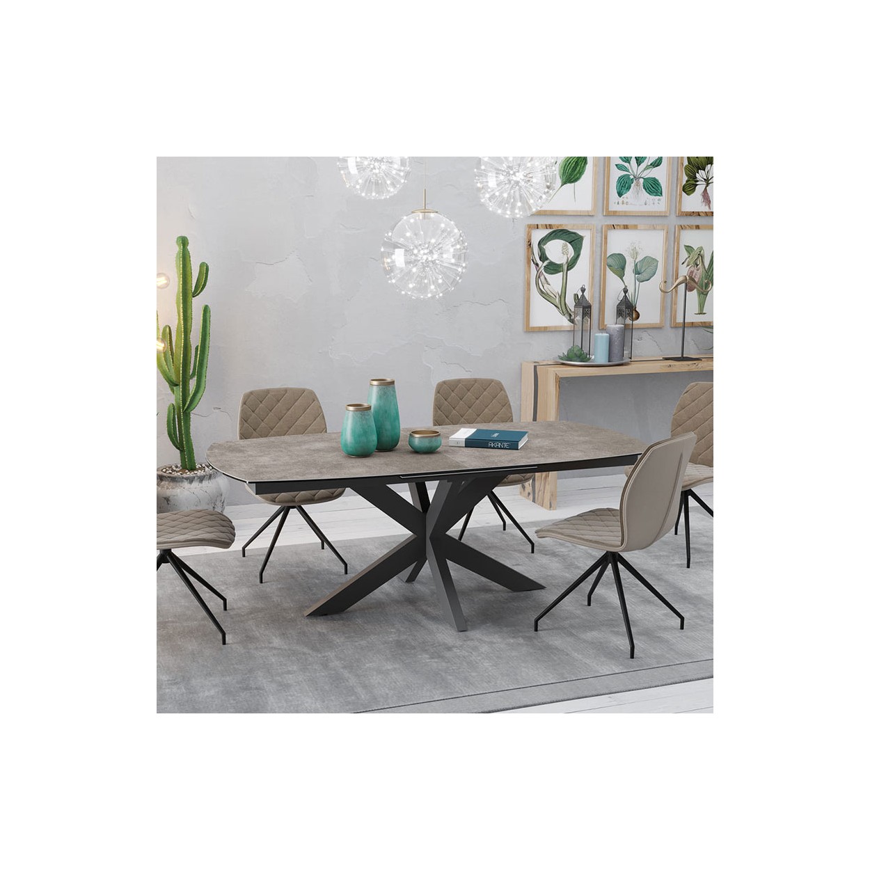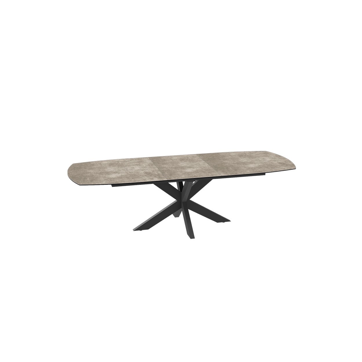 La table Phoenix possède un plateau en véritable céramique imitation marbre avec un piétement métal. Système extensible avec ouverture centrale automatique.